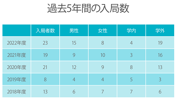 Feature 05 他大学出身者が約2/3で、多様性に富んだ環境です